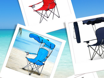 Beach Chair with Canopy Shade Relax in style and stay protected from the sun! Our comfy beach chairs come with built-in canopy shades *3 Day Rental!