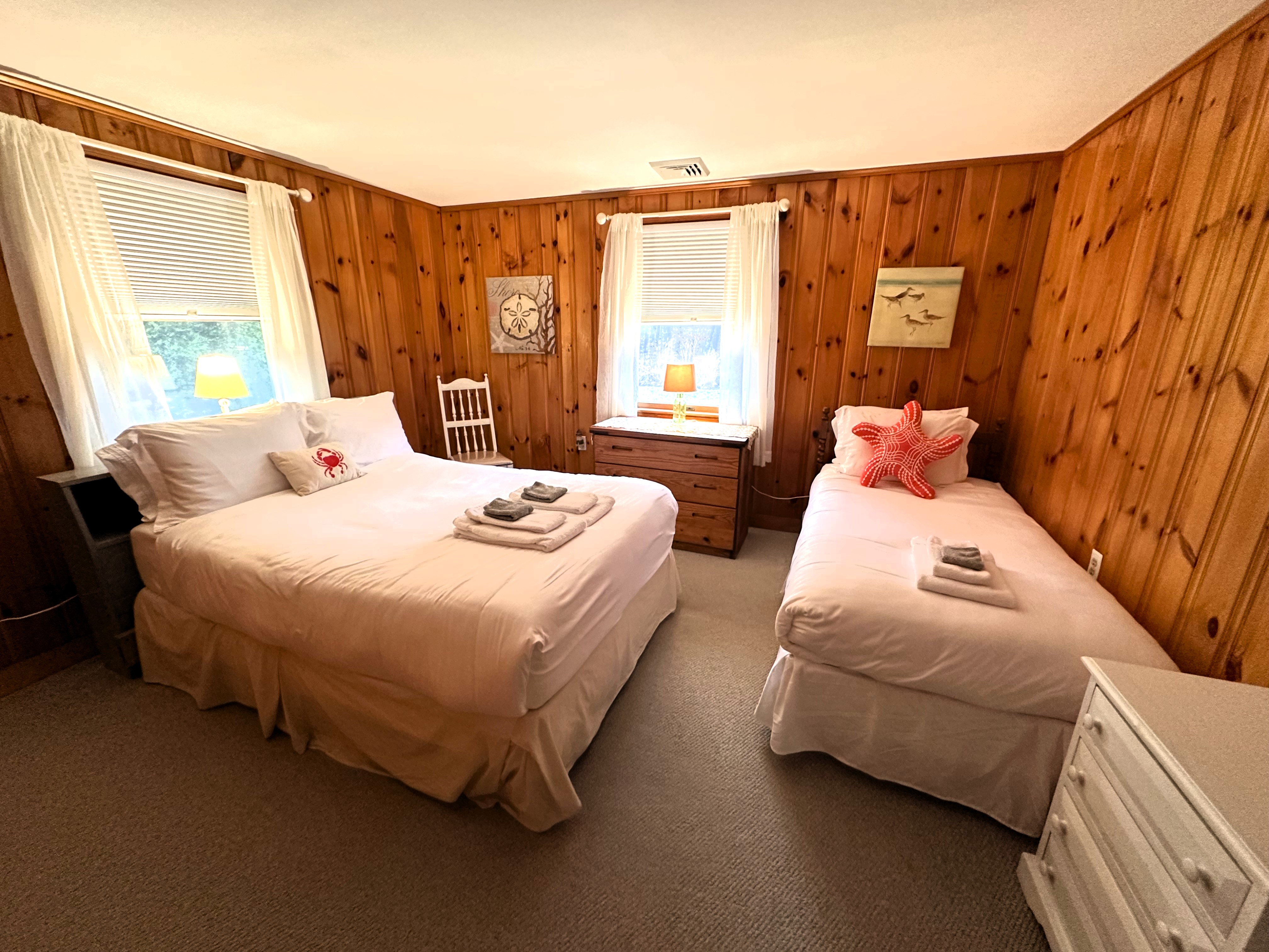 o Cottage 2: 1 full bed, 1 bunk bed (2 twins), and a trundle bed in the sunroom (2 twins)