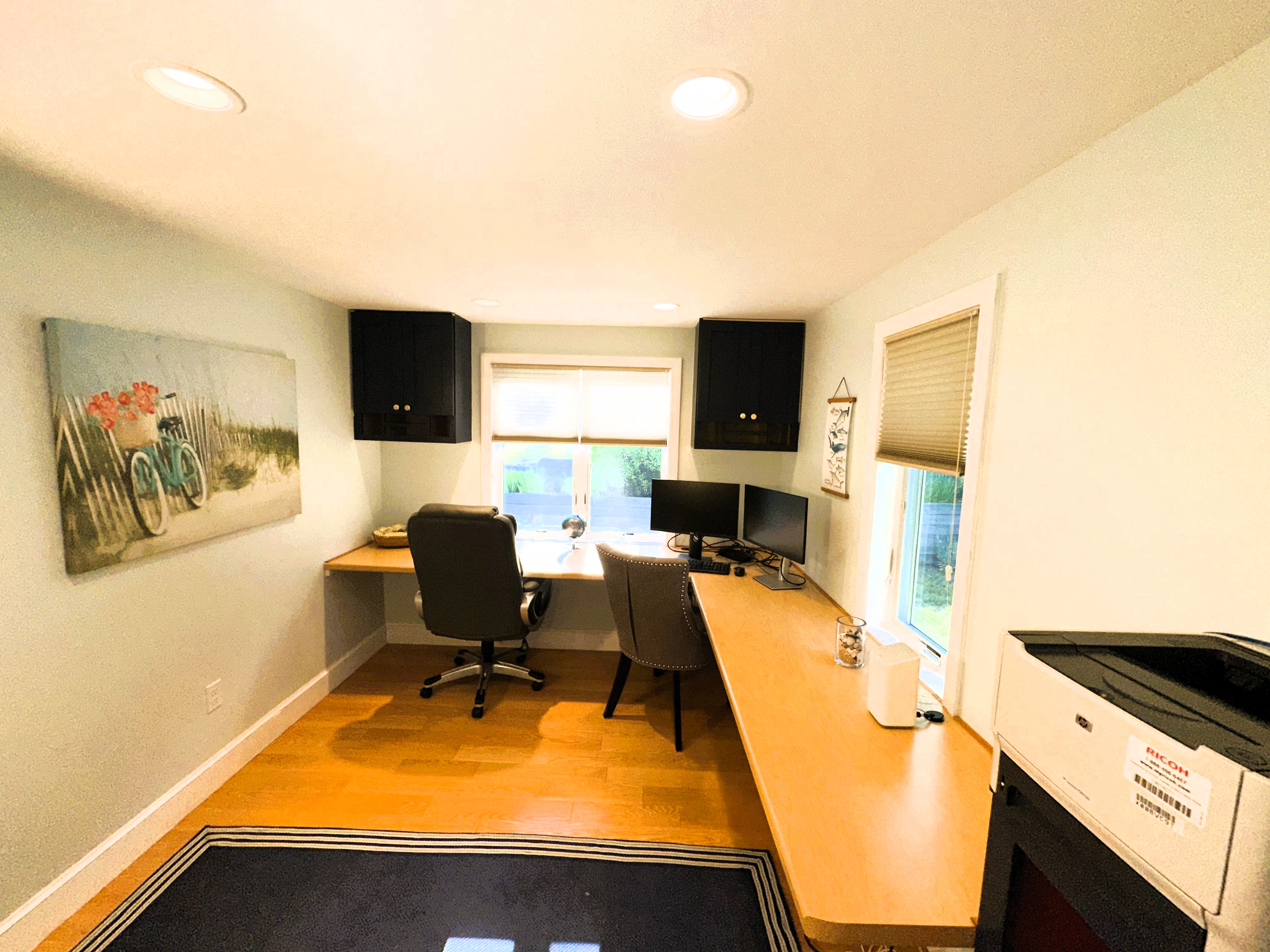 For those blending work and wanderlust, a dedicated office with dual monitors and printer lets you stay connected—then unplug just as easily.