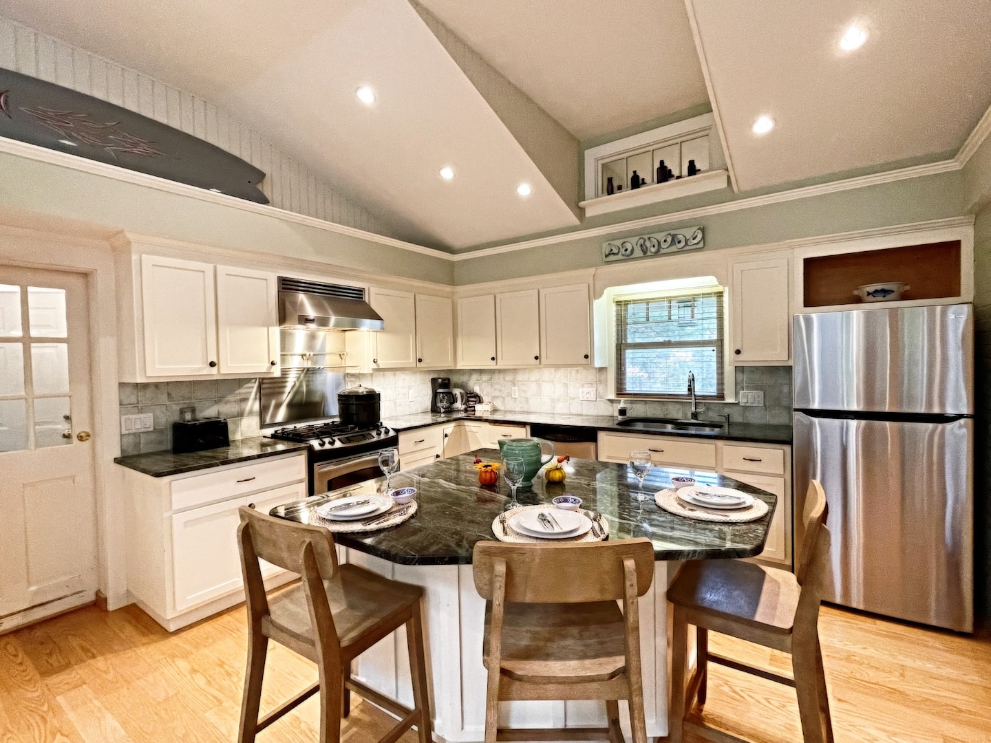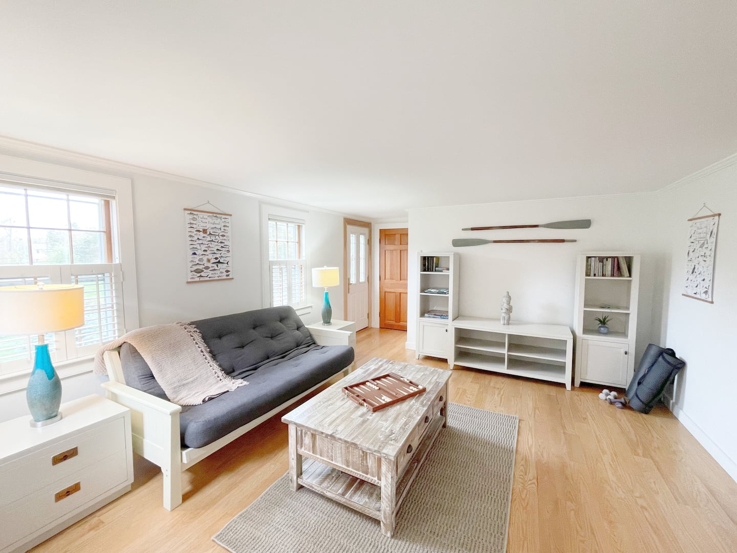 In summer, paddle across the gentle waters of the cove on our kayaks and SUPs, bike the scenic Rail Trail, or explore Fort Hill’s breathtaking coastal hikes. In winter, unwind by the gas fireplace after a day of beachcombing, wildlife spotting, or catching a stunning bayside sunset. No matter the season, our thoughtfully designed home ensures a comfortable and unforgettable stay.