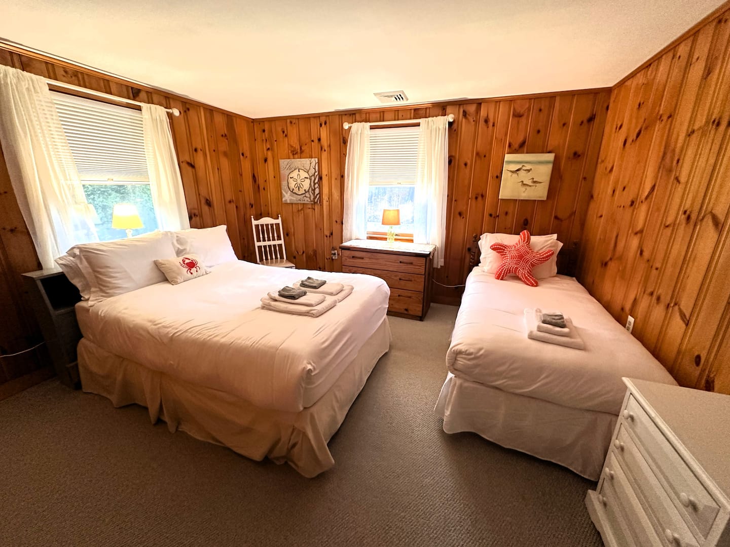 We loved staying at Alpine House. It felt private and had all the amenities we could have asked for. They provided all the beach equipment and towels, along with boogie boards and even a wagon to get it down the road. We were big fans of the screened in porch, which allowed us to have dinners “outside” without getting bitten by mosquitos. The beach is only a few minutes walk, but it is a very small beach, so try to get there earlier to get a good spot. The water was lovely and warm and not too deep. Perfect for our almost 7 year old. Would highly recommend this property.