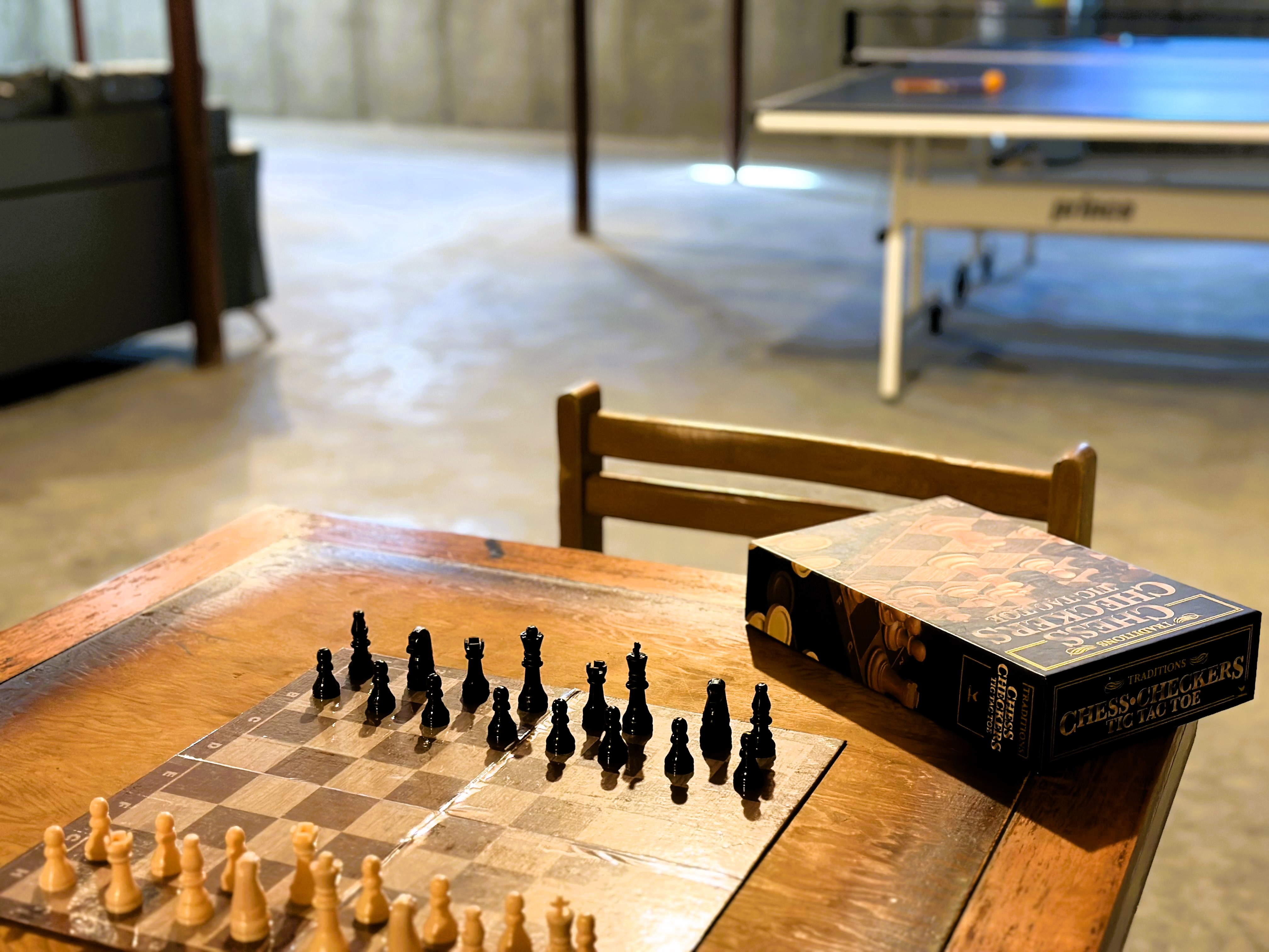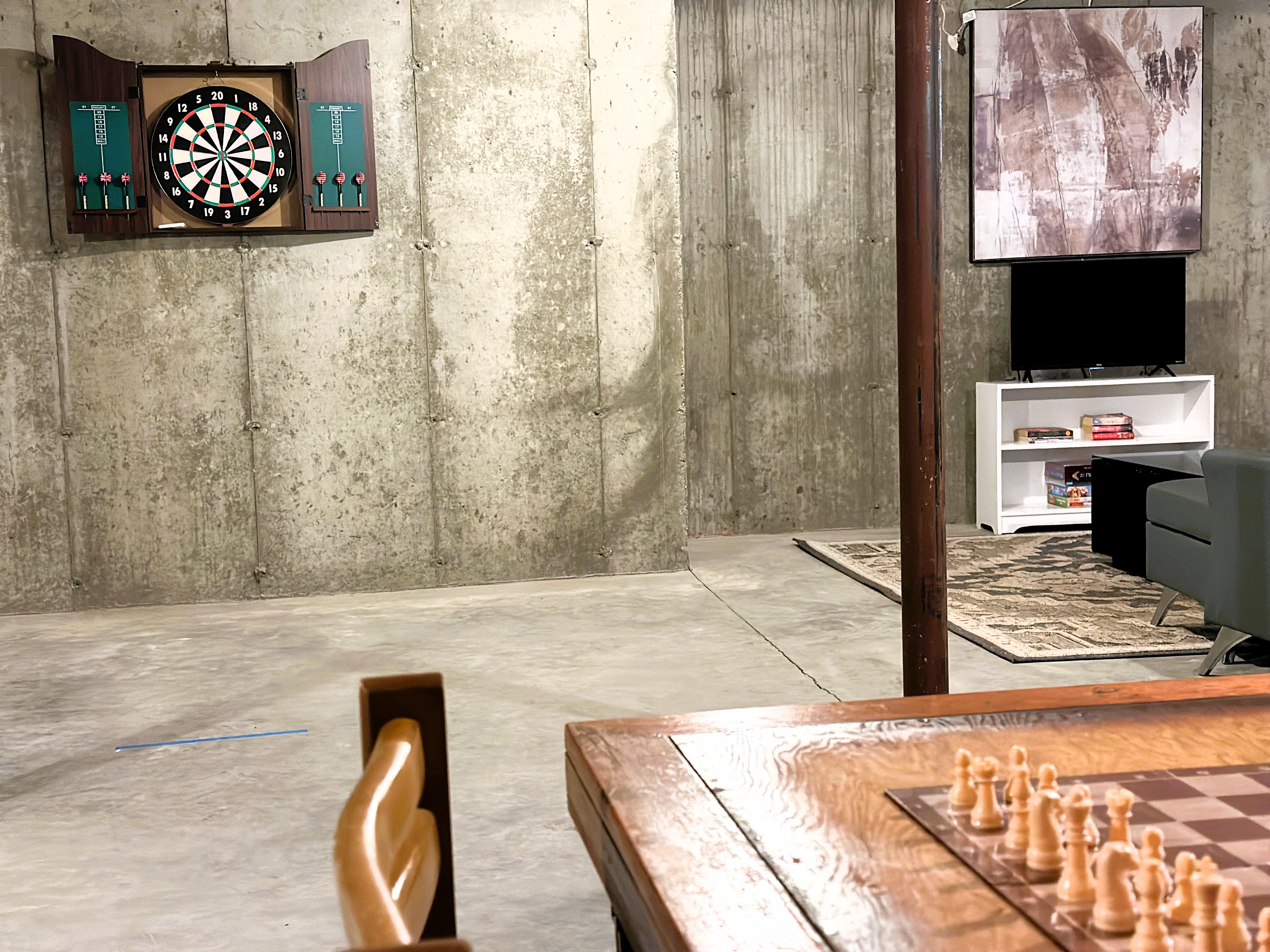 - “Secret” game room with card table, full size Ping Pong, streaming movies, puzzles and books.