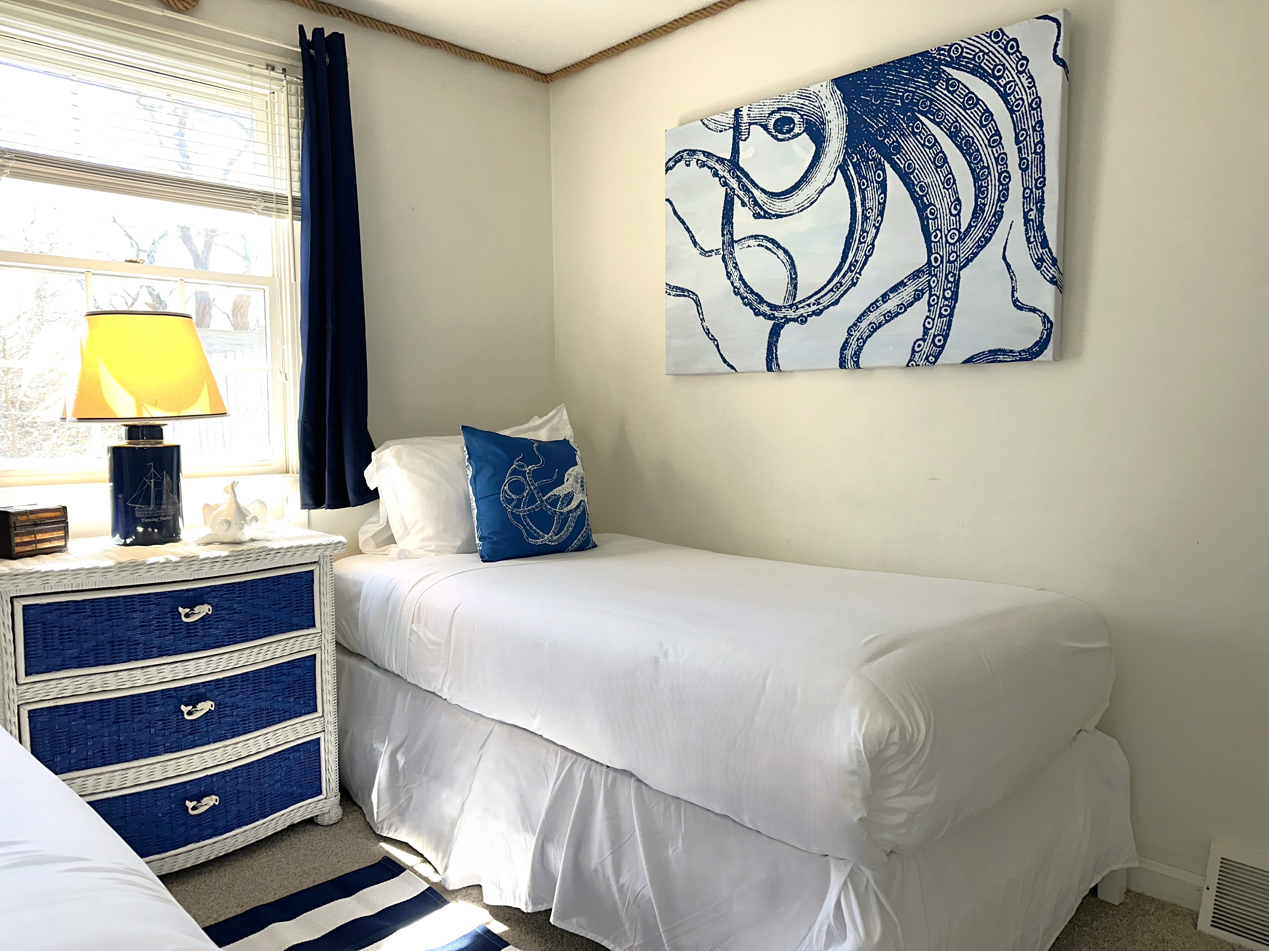 • 1 King bed — spacious primary bedroom with brand new mattress and clean, coastal design