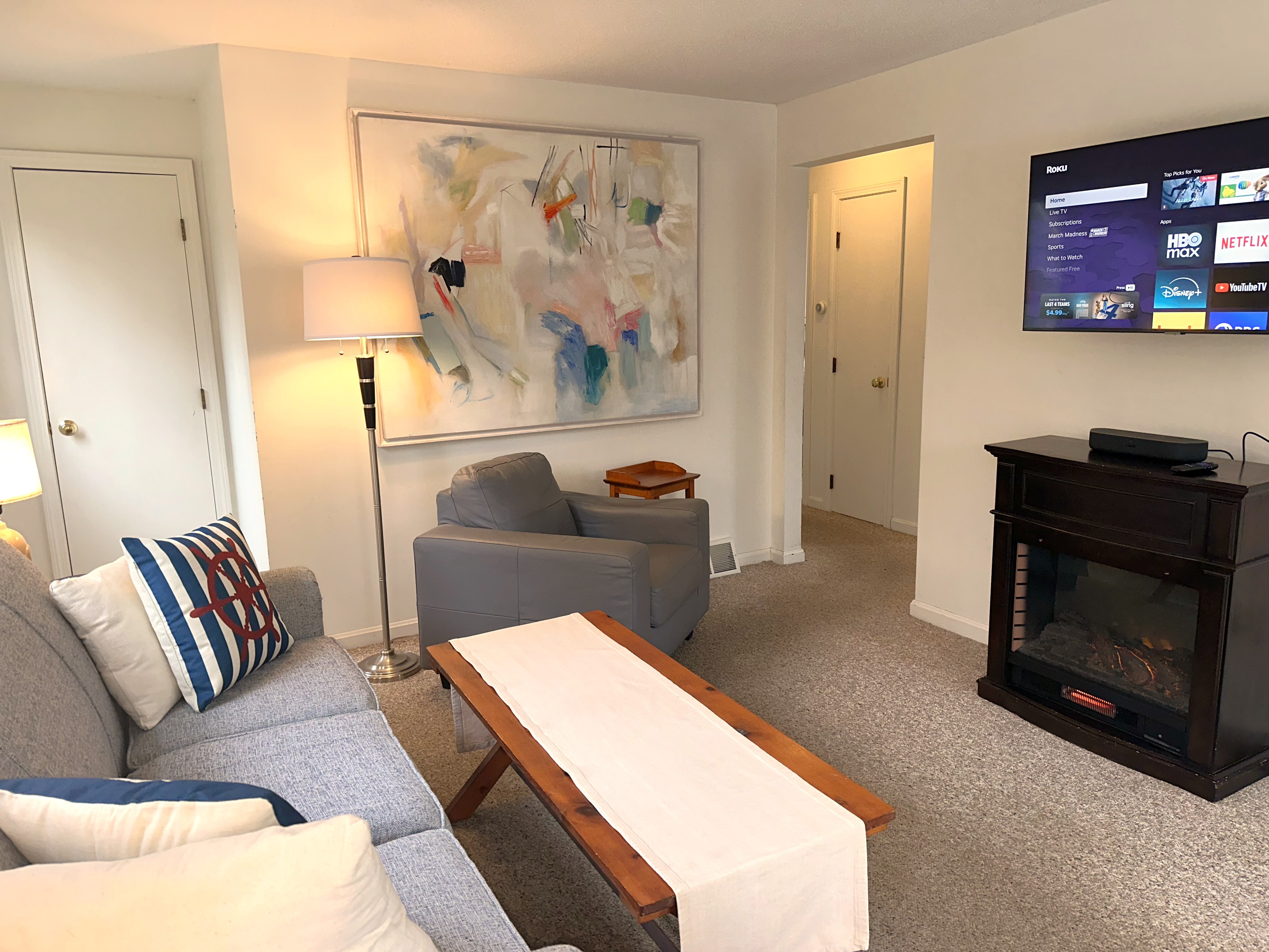 • Wall-mounted Roku TV in the main living area (and in the master bedroom as well)