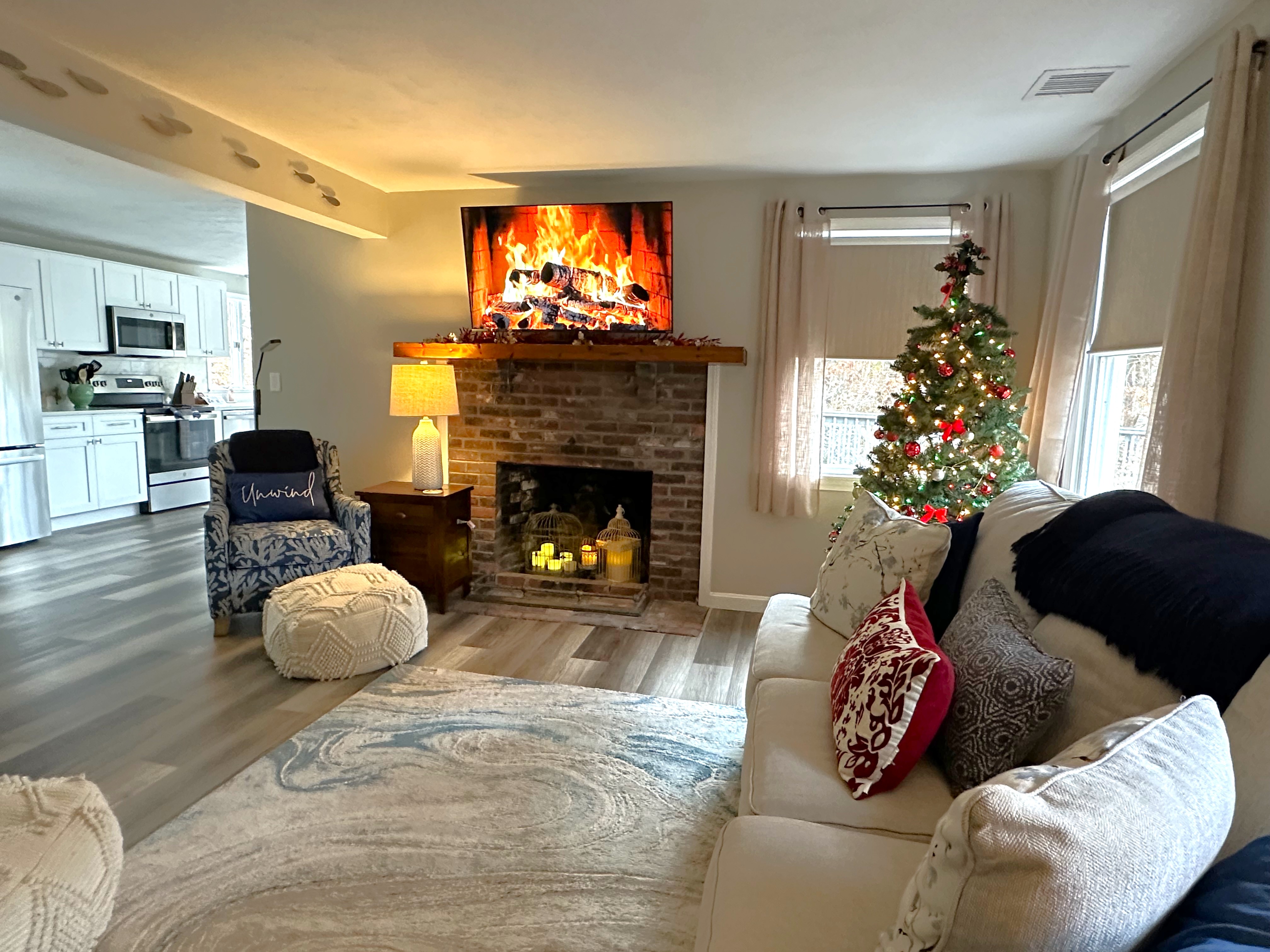 The main living area boasts a modern coastal aesthetic, with crisp whites, soothing blues, and natural textures that evoke the serene beauty of the Cape. The large kitchen has all new appliances, dishwasher, and an amazing coffee bar to get you going in the morning. The second kitchen, conveniently located on the ground level, is a game-changer for groups seeking extra space and privacy—perfect for in-laws, teens, or anyone who wants a little independence while still being part of the fun.